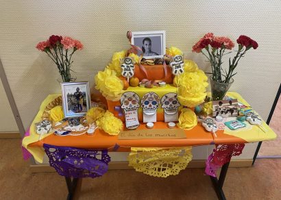 Der Wahlpflichtkurs 9 Geographie in spanischer Sprache hat zum diesjĂ€hrigen DĂa de los Muertos diesen Altar gestaltet....